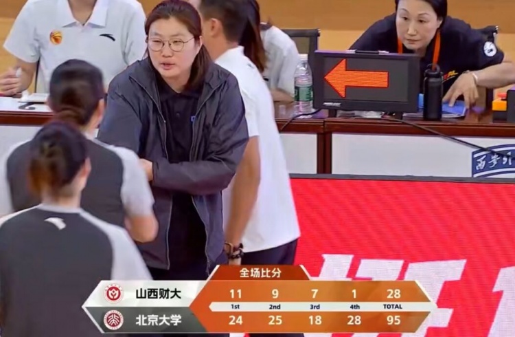 末节决战,山西财大进攻端完全崩盘,打了8分钟一分未得,北京大学全员发力轰出23-0超级攻击波一举领先到63分。马嘉悦罚球得到山西财大单节唯一1分,最终北京大学95-28大胜山西财大,晋级4强。