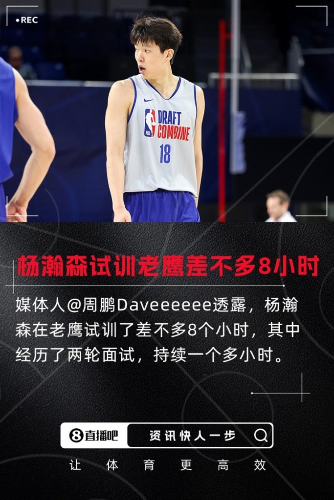 睡觉前同步下杨瀚森在老鹰试训的一些细节: