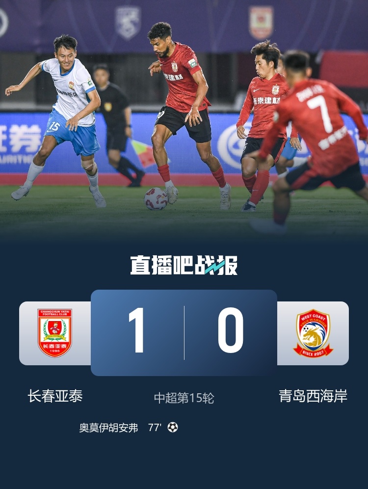 6月25日讯 北京时间6月25日19:35,中超第15轮,长春亚泰在长春体育中心体育场迎战青岛西海岸。上半场,亚泰打入一球但被吹越位,谭龙吊射造险,杨希门线解围;下半场,内尔松卢斯错失良机,奥莫伊胡安弗打入全场唯一进球。最终,亚泰1-0击败西海岸取得近9轮首胜,积8分仍垫底,积分追平倒数第二的海牛,西海岸6轮不胜积18分暂列第9位。