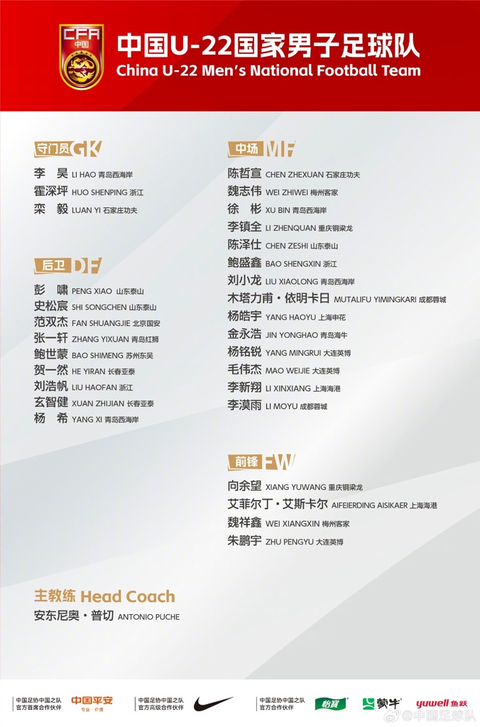 7月1日讯 U22国足公布最新一期集训名单,《体坛周报》记者马德兴撰文谈到此次阵容,文章表示,U22国足将与伊拉克队进行两场热身赛。