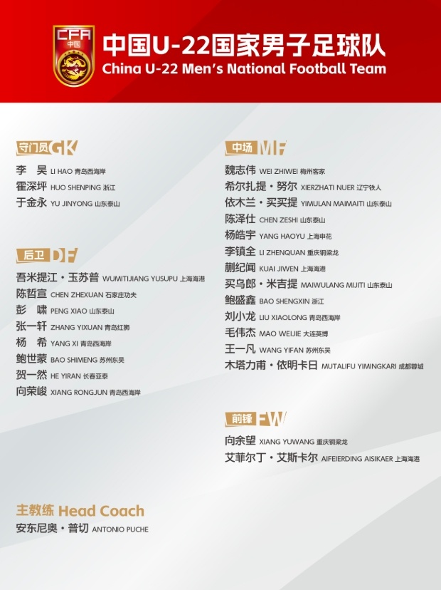 U23亚洲杯预选赛D组比赛9月3日至9日将在陕西省西安市进行,安东尼奥率领的U22国足与澳大利亚队、东帝汶队、北马里亚纳群岛队同组。