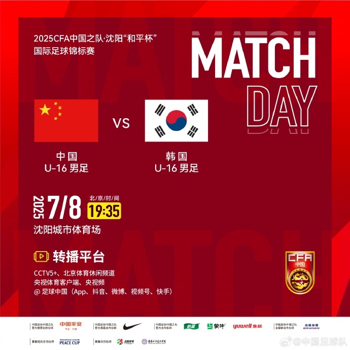 07月08日讯 今晚19点35分,U16男足国际足球锦标赛“和平杯”第三轮,中国男足U16对阵韩国U16。赛前,双方首发出炉。